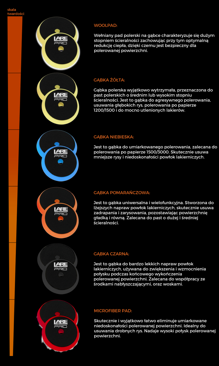 - Typ narzędzia (akcesoria) Gąbki / Pady polerskie