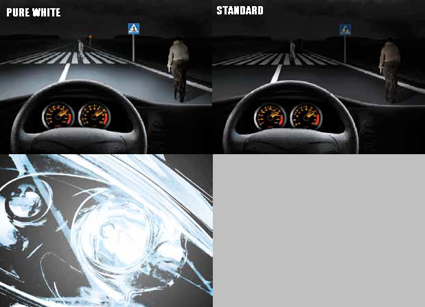Żarówki są wykonane z delikatnie niebieskiego szkła, z dodatkowym filtrem, dzięki czemu w efekcie otrzymujemy światło zbliżone do światła dziennego. Wpływa to na komfort oraz bezpieczeństwo podczas jazdy w nocy.